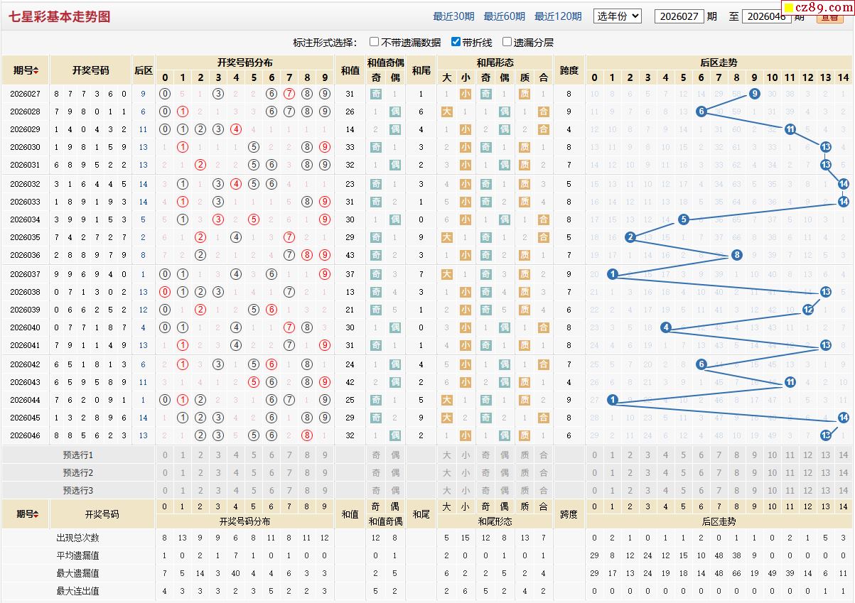26年047期体彩七星彩近期走势图分析