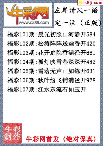 26年107期左岸清风一语定一注(原创正版)