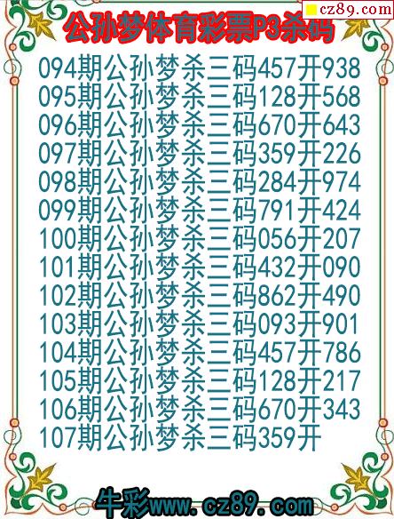 26年107期公孙梦体育彩票P3杀码图