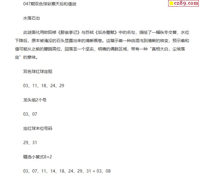 26年福彩双色球047期 彩票天后和值谜