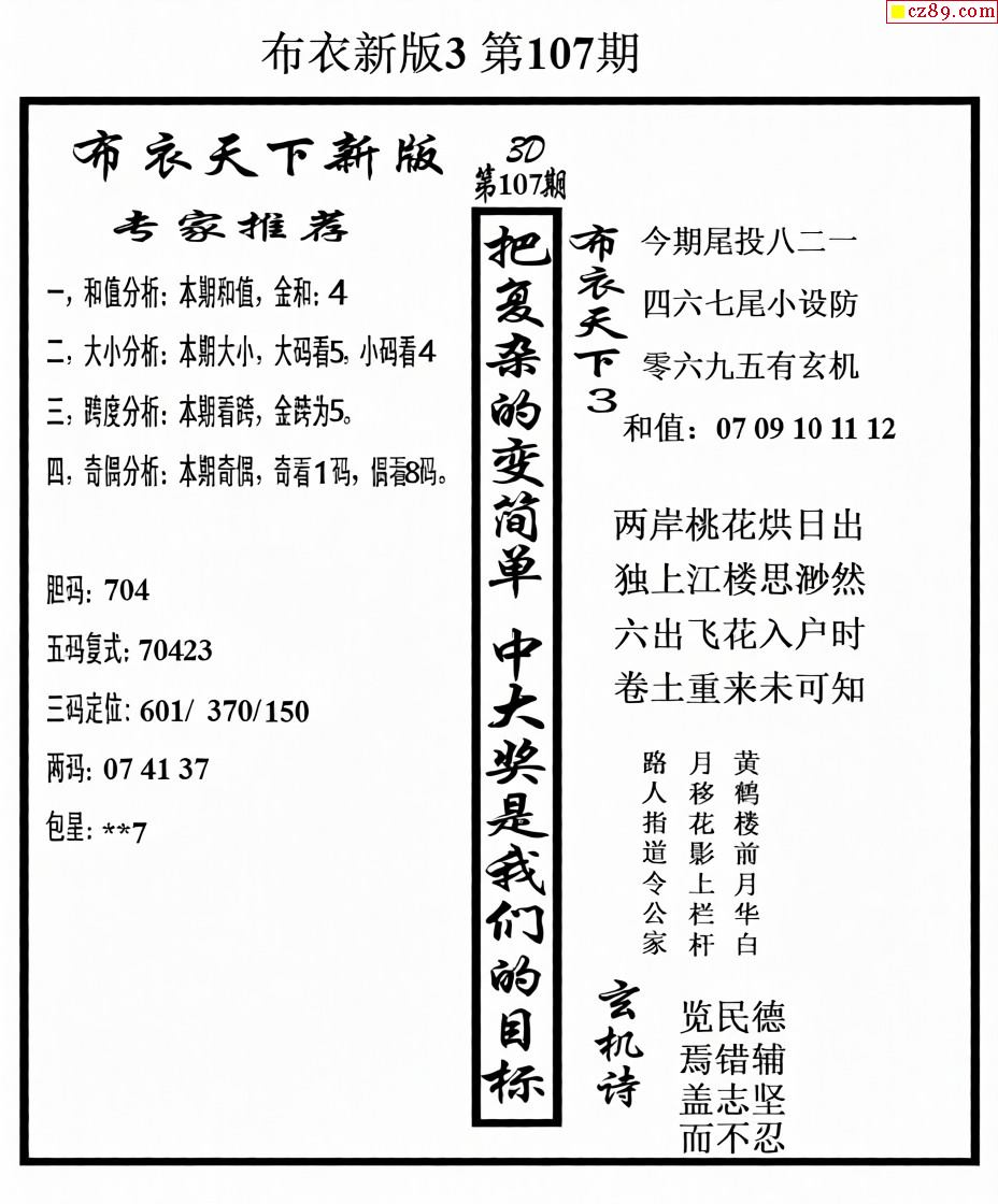 武松杀码2026107期今日3d图谜