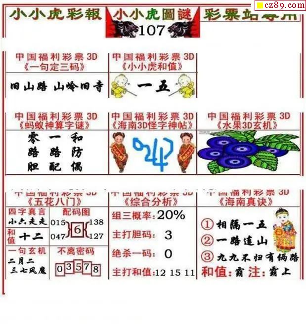 2026107期3D图谜汇总(一)