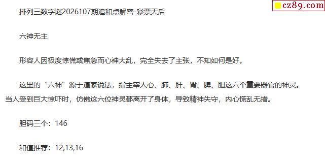 彩票天后p3定和值谜26年107期