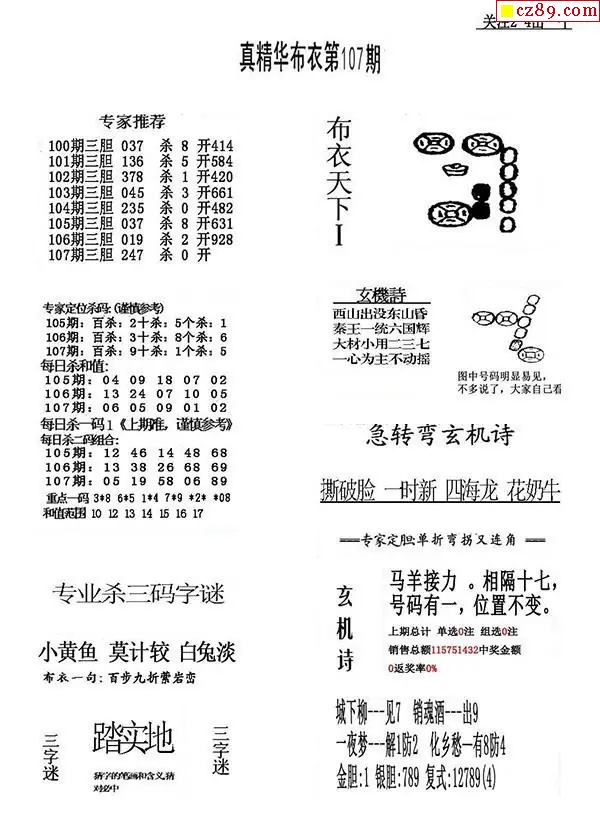 真精华布衣报2026107期3d图谜