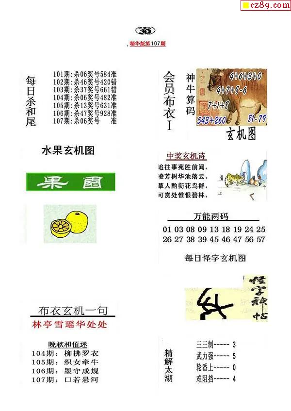 2026107期真精华布衣123456