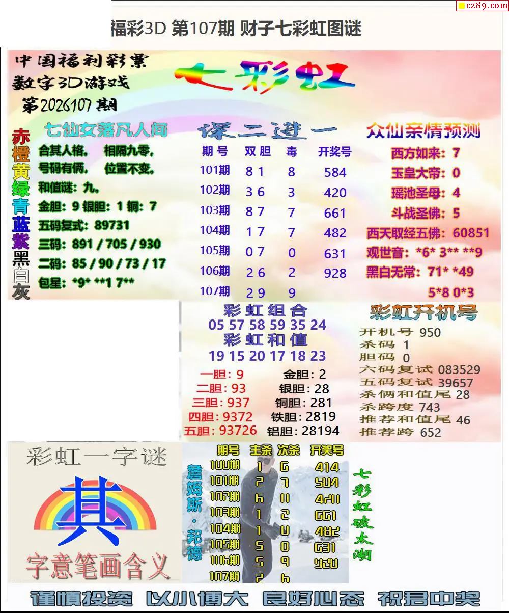福彩3D2026107期牛彩图谜预测汇总