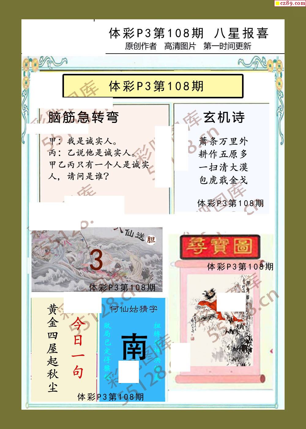 八星报喜108期体彩p3图谜