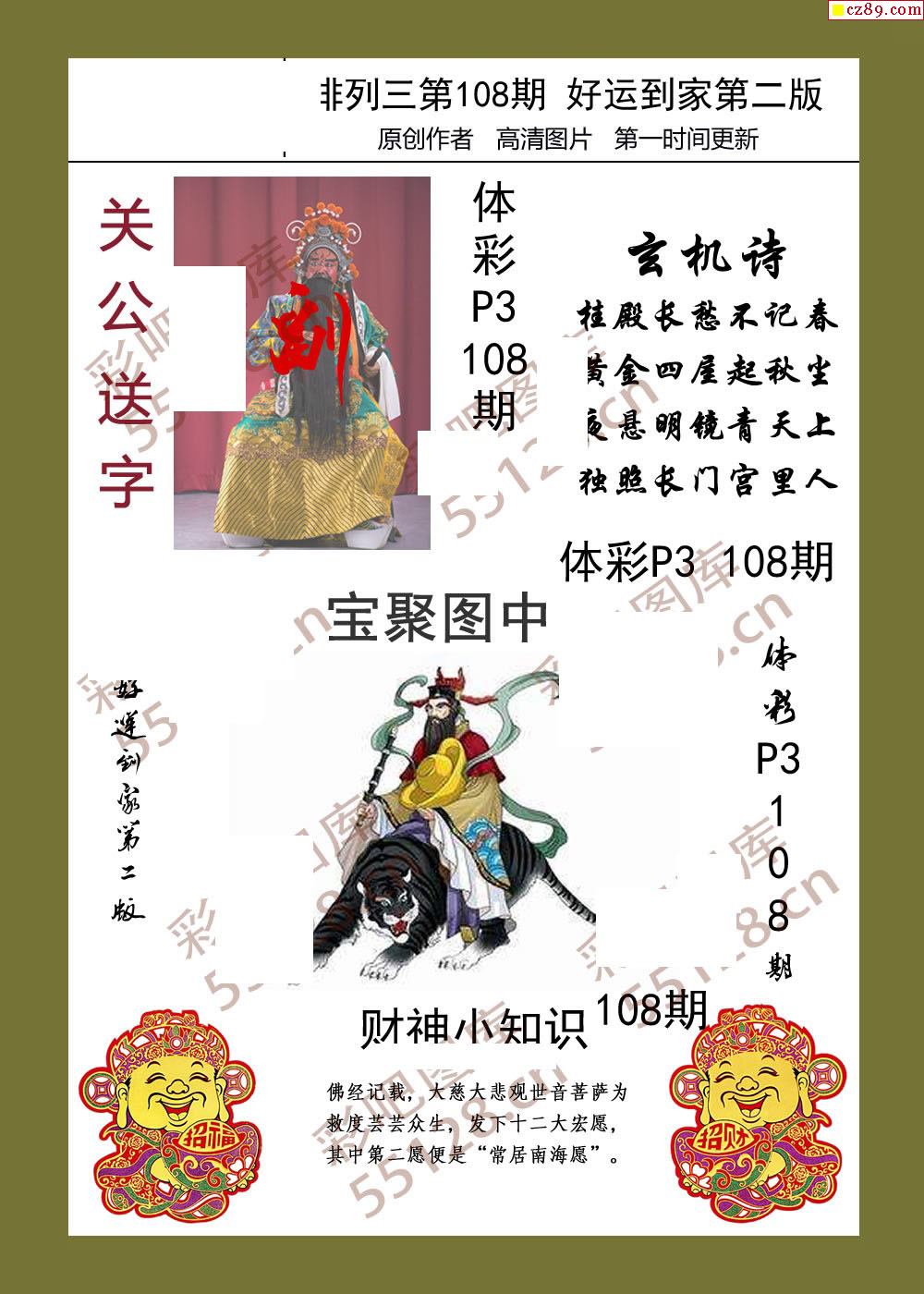 好运到家系列108期体彩p3图谜