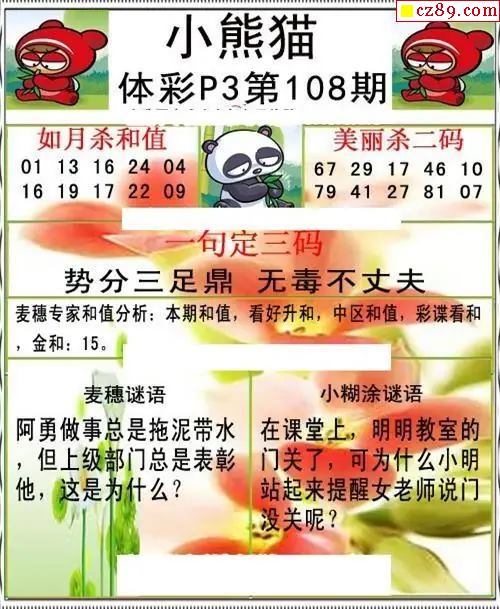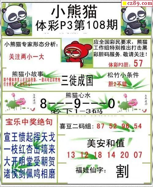 小熊猫2026108期体彩P3图谜