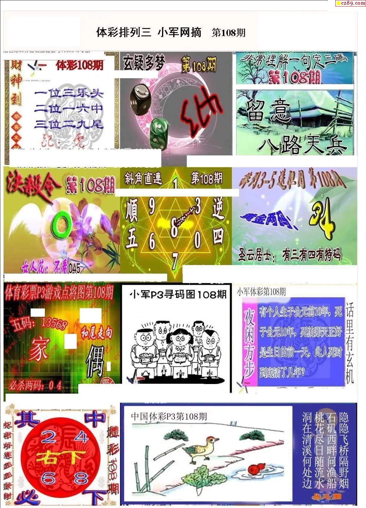 2026年108期牛彩网体彩P3画迷图谜汇总分享