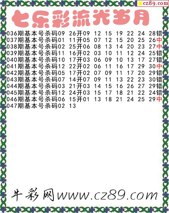 七乐彩2026047期流光岁月杀码图谜 10中4