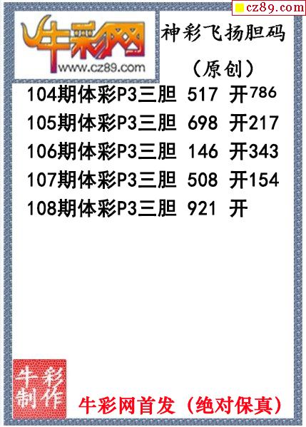 神彩飞扬三胆108期体彩P3图谜(原创)