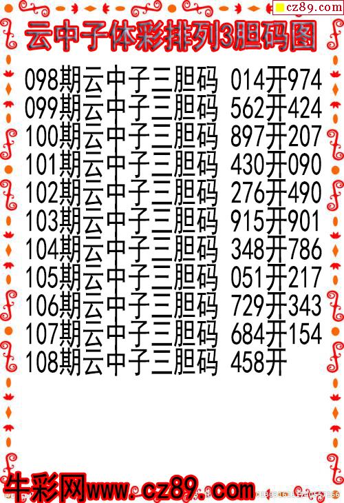 26年108期云中子体彩排列3胆码图