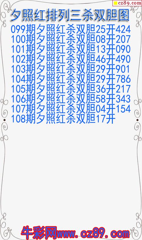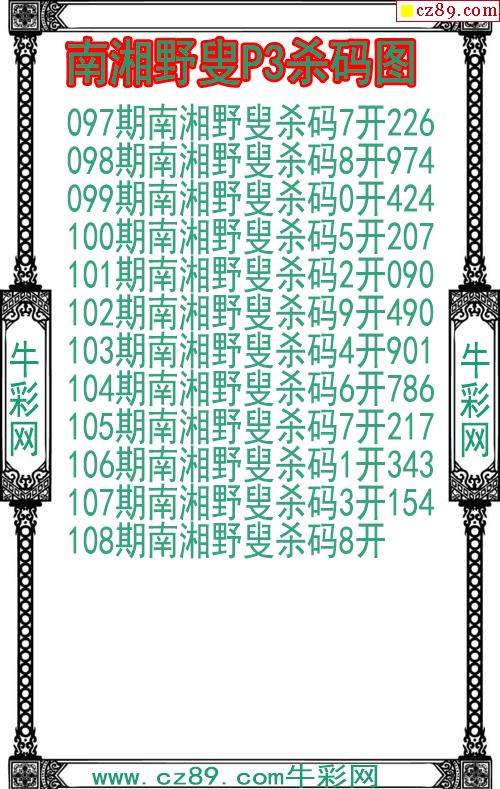 2026年109期牛彩网体彩P3画迷图谜汇总分享