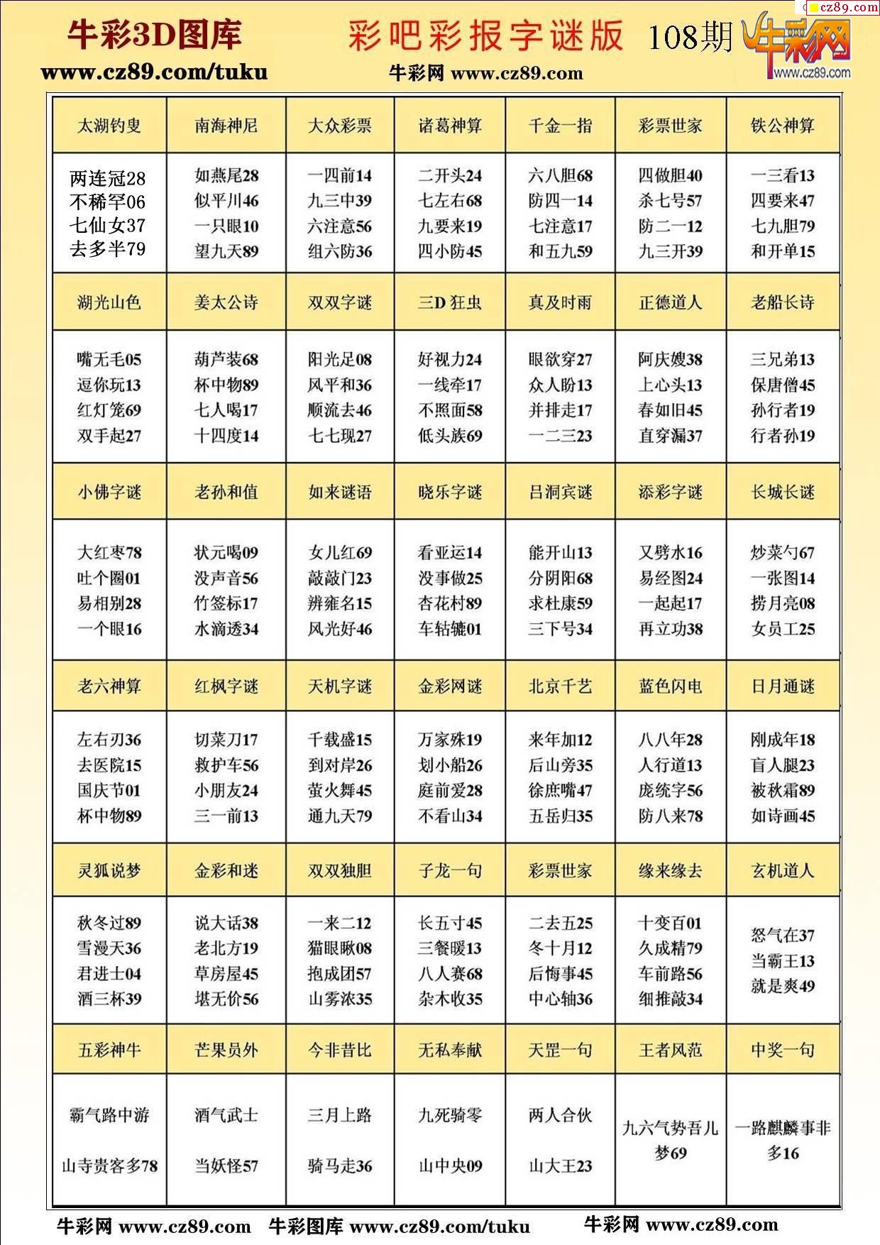 牛彩版3D字谜彩报图26年108期打印版