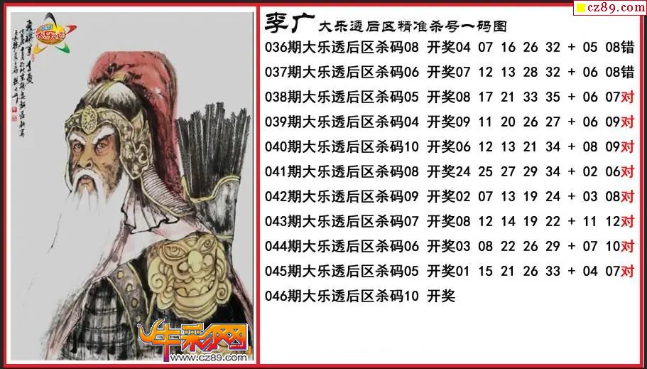 大乐透046期李广后区精准杀号一码图