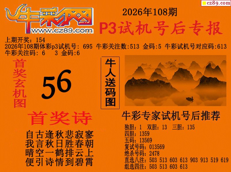 2026108期p3试机号后牛彩网专报