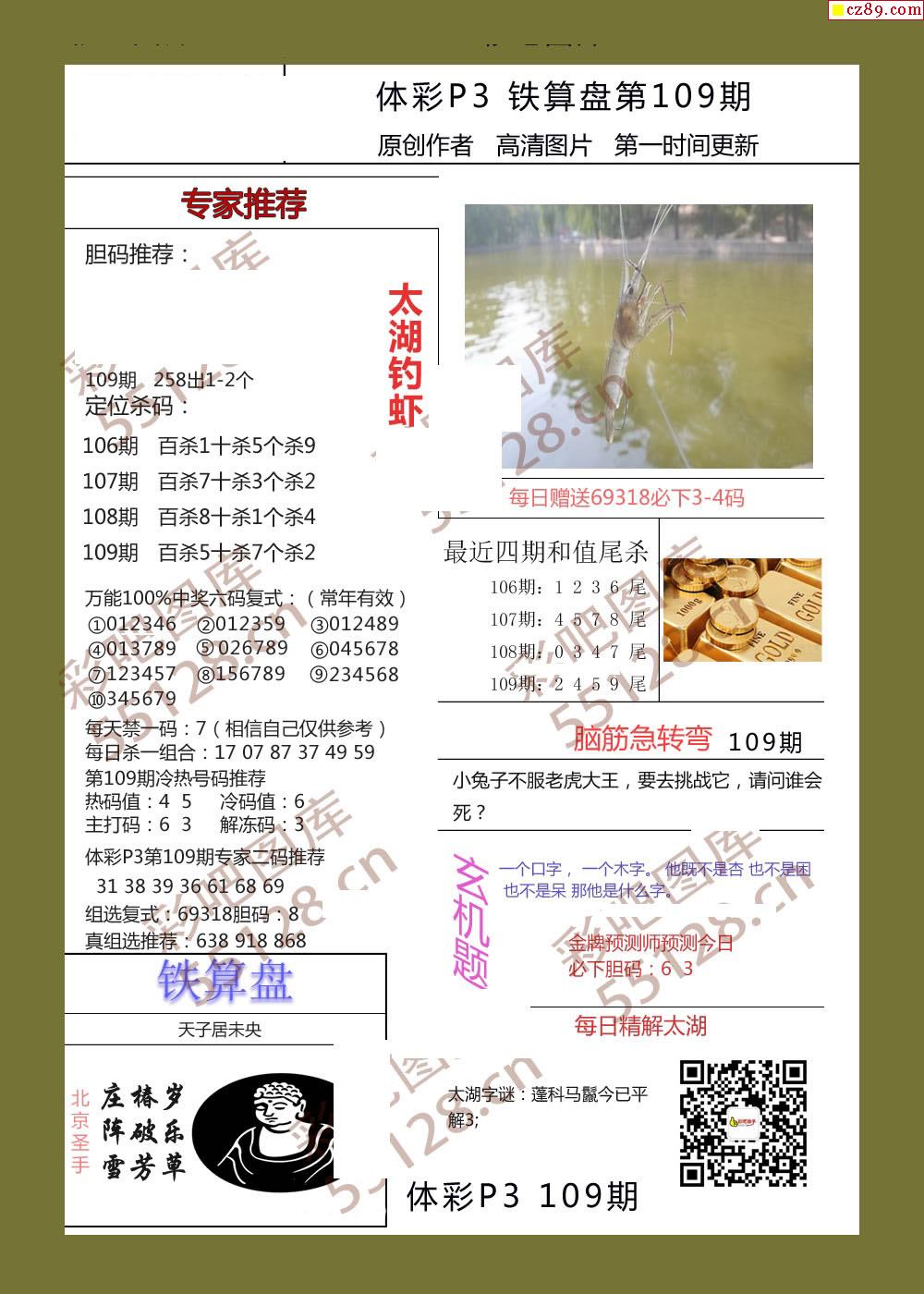 2026年109期牛彩网体彩P3画迷图谜汇总分享