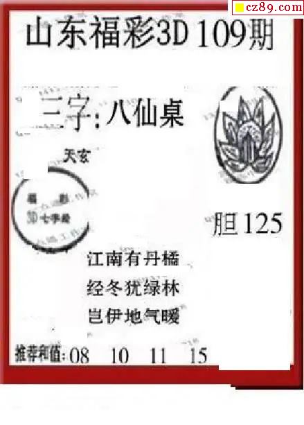 福彩3D2026109期图谜汇总