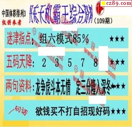 e族2026年109期体彩排列3图谜