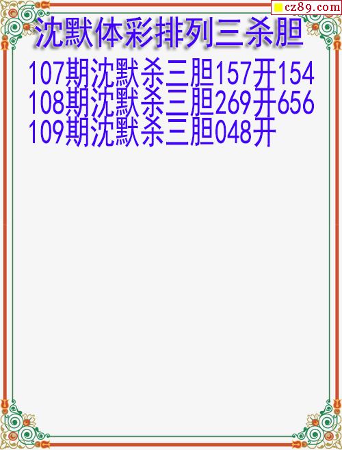 26年109期沈默体彩排列三杀胆图迷