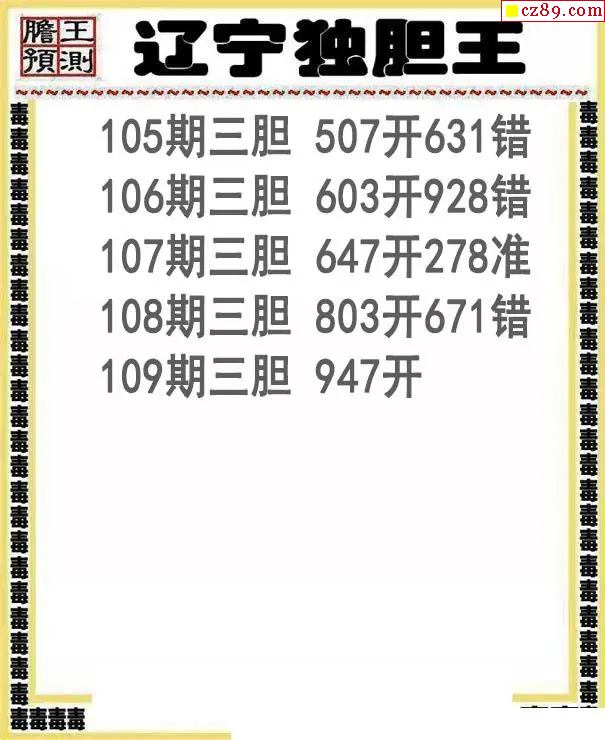 辽宁独胆王2026109期3d图谜