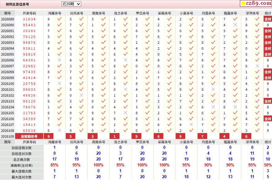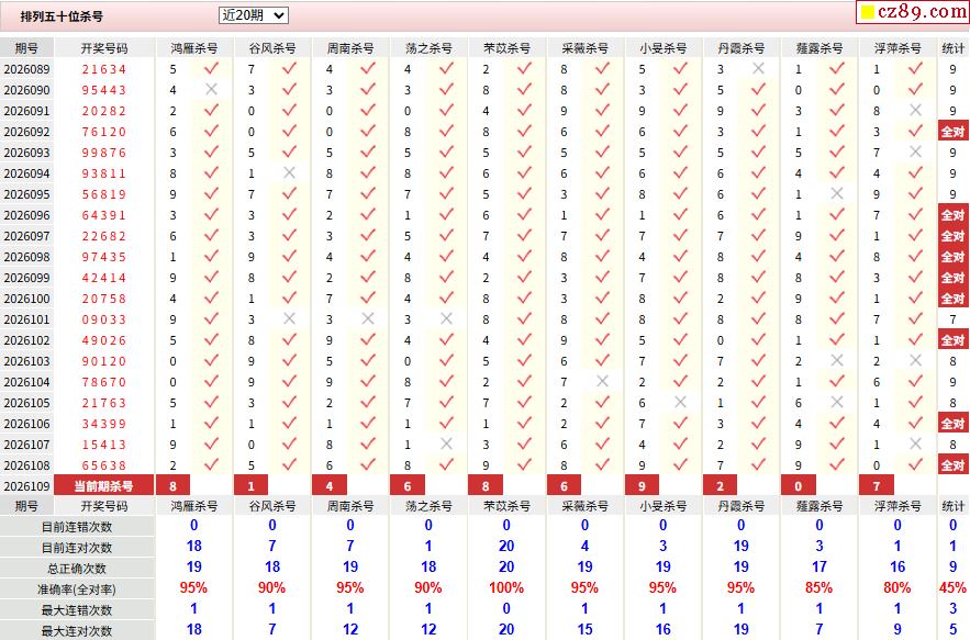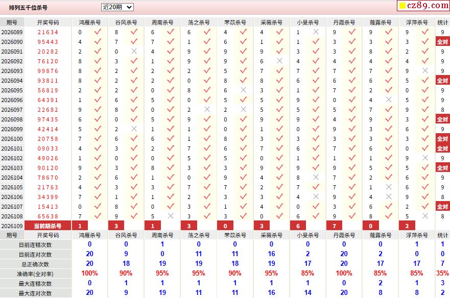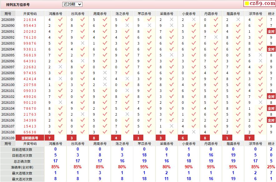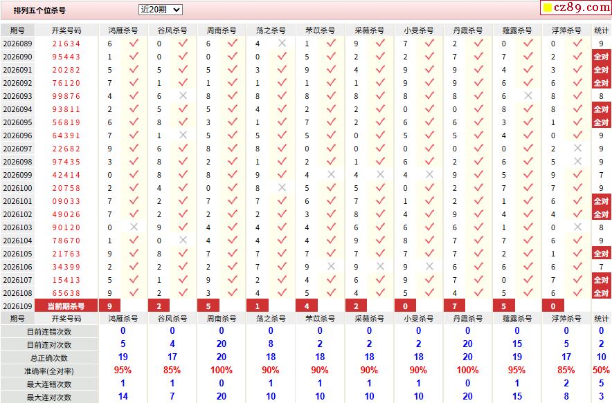 109期彩票专家体彩P5杀号推荐图表
