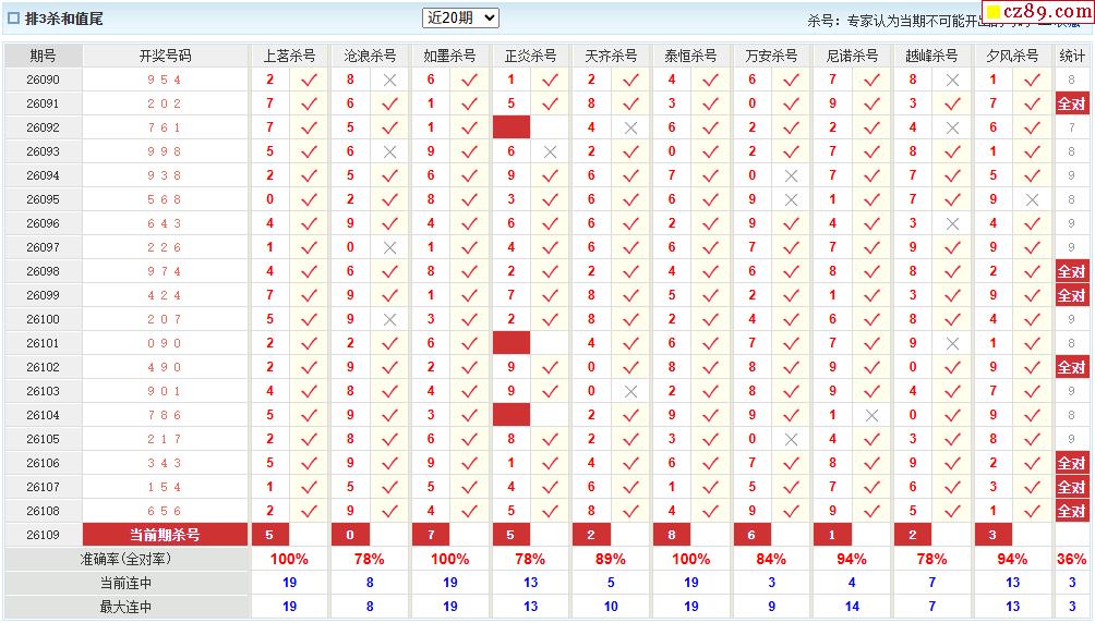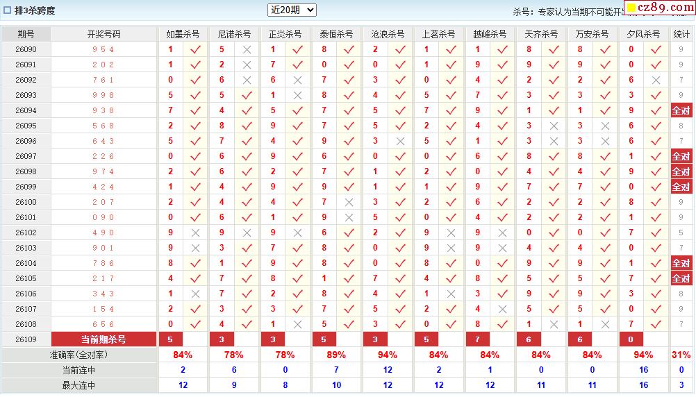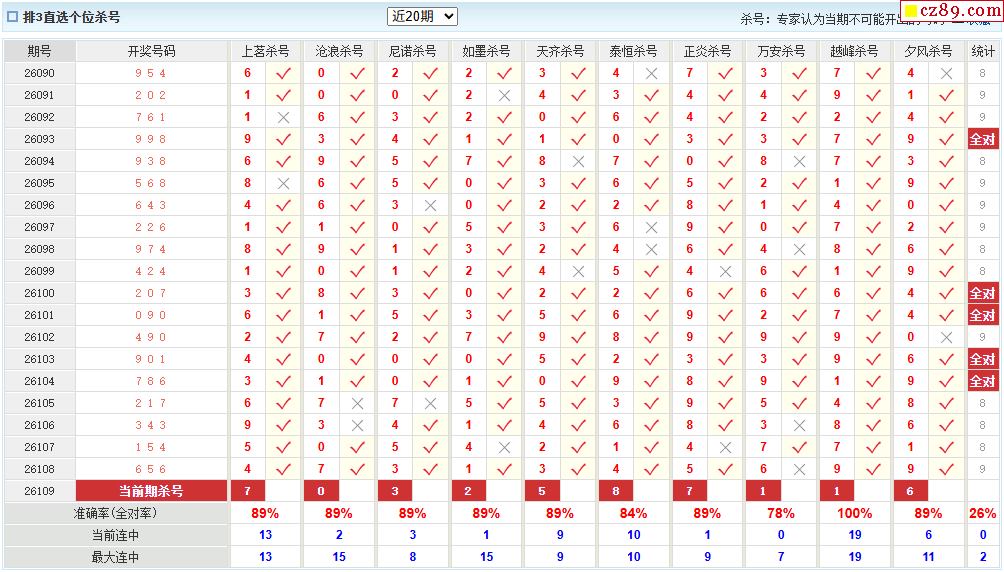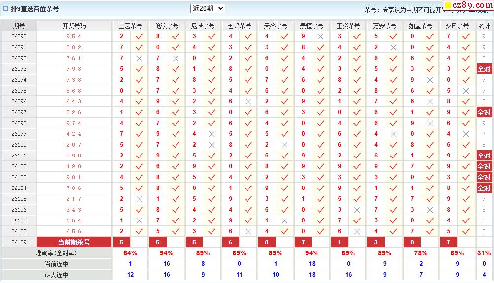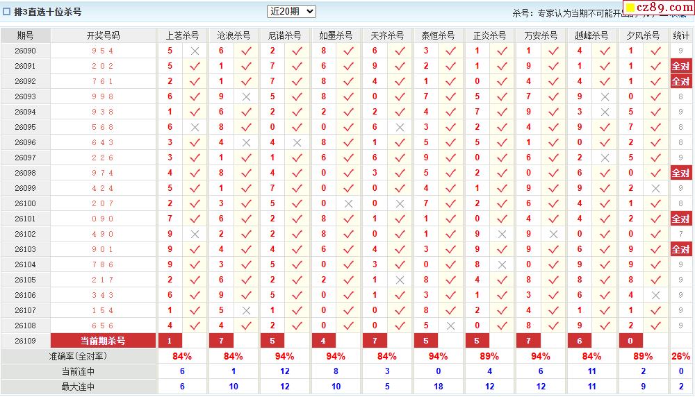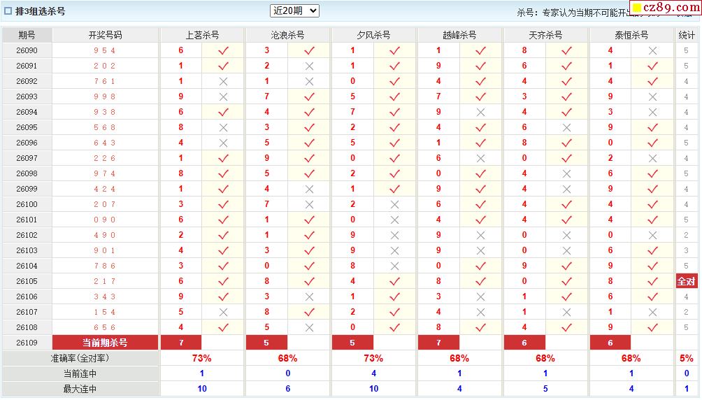 26年109期彩宝贝专家体彩P3杀号定码图表
