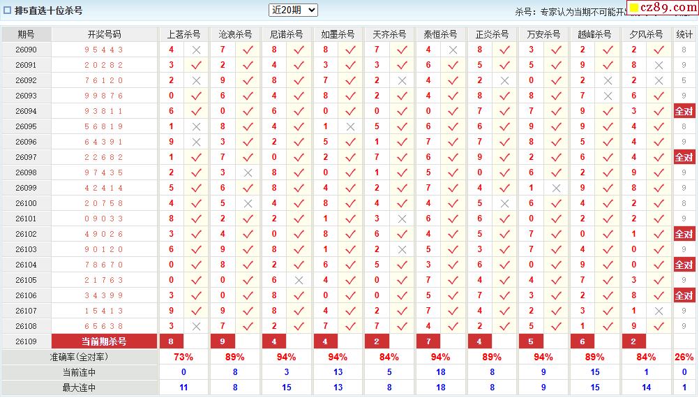 26年109期澳客专家体彩P5杀号定码推荐