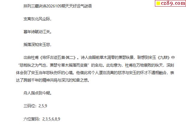 26年109期彩金宝排列三四字解谜