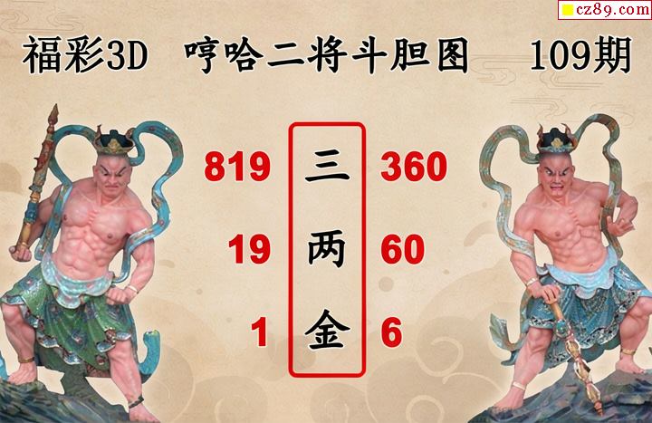 福彩3D2026109期 白鱼舟3D图谜哼哈二将斗胆图