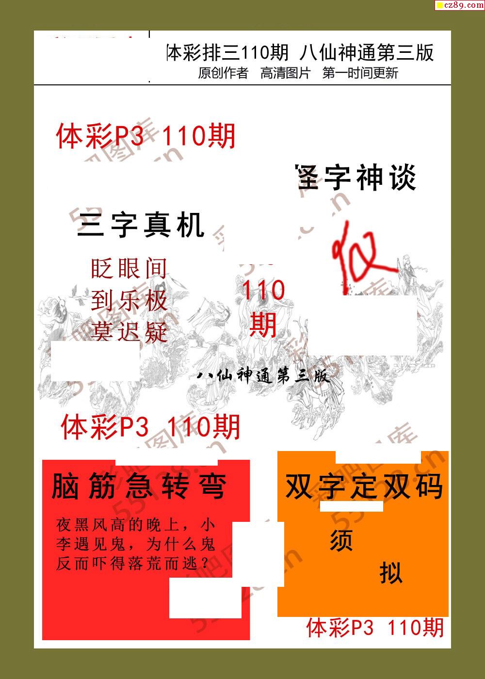 八仙神通系列110期体彩p3图迷