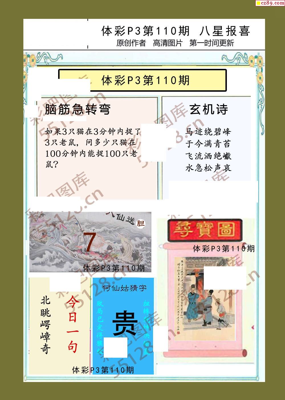 2026年110期牛彩网体彩P3画迷图谜汇总分享