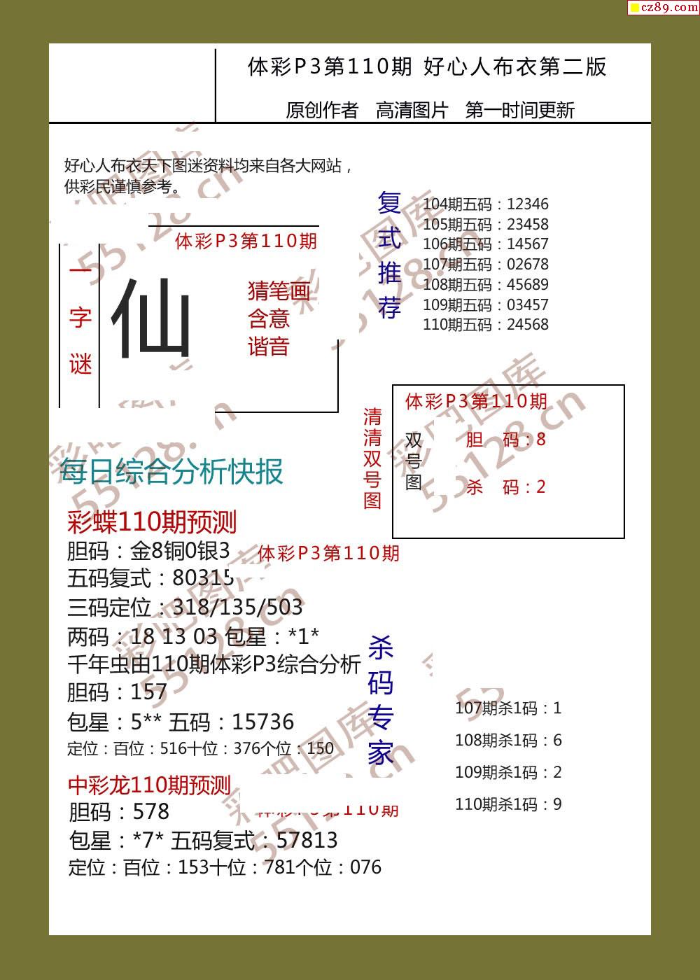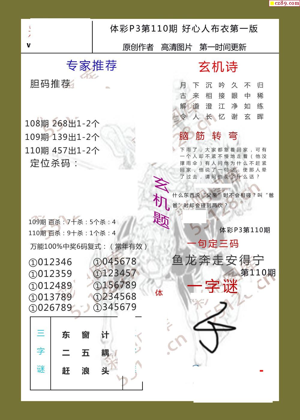 2026年110期牛彩网体彩P3画迷图谜汇总分享