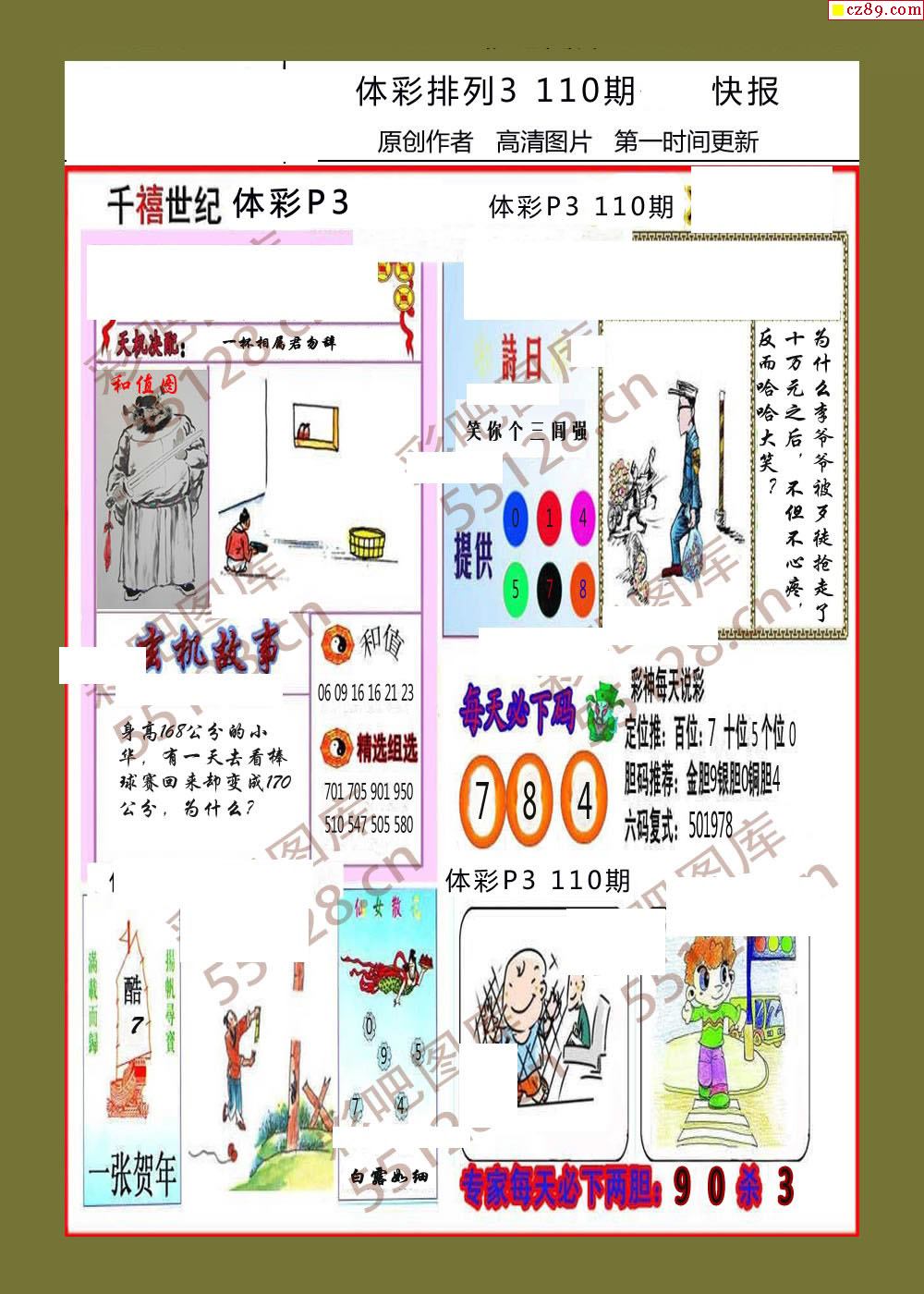 2026年110期牛彩网体彩P3画迷图谜汇总分享