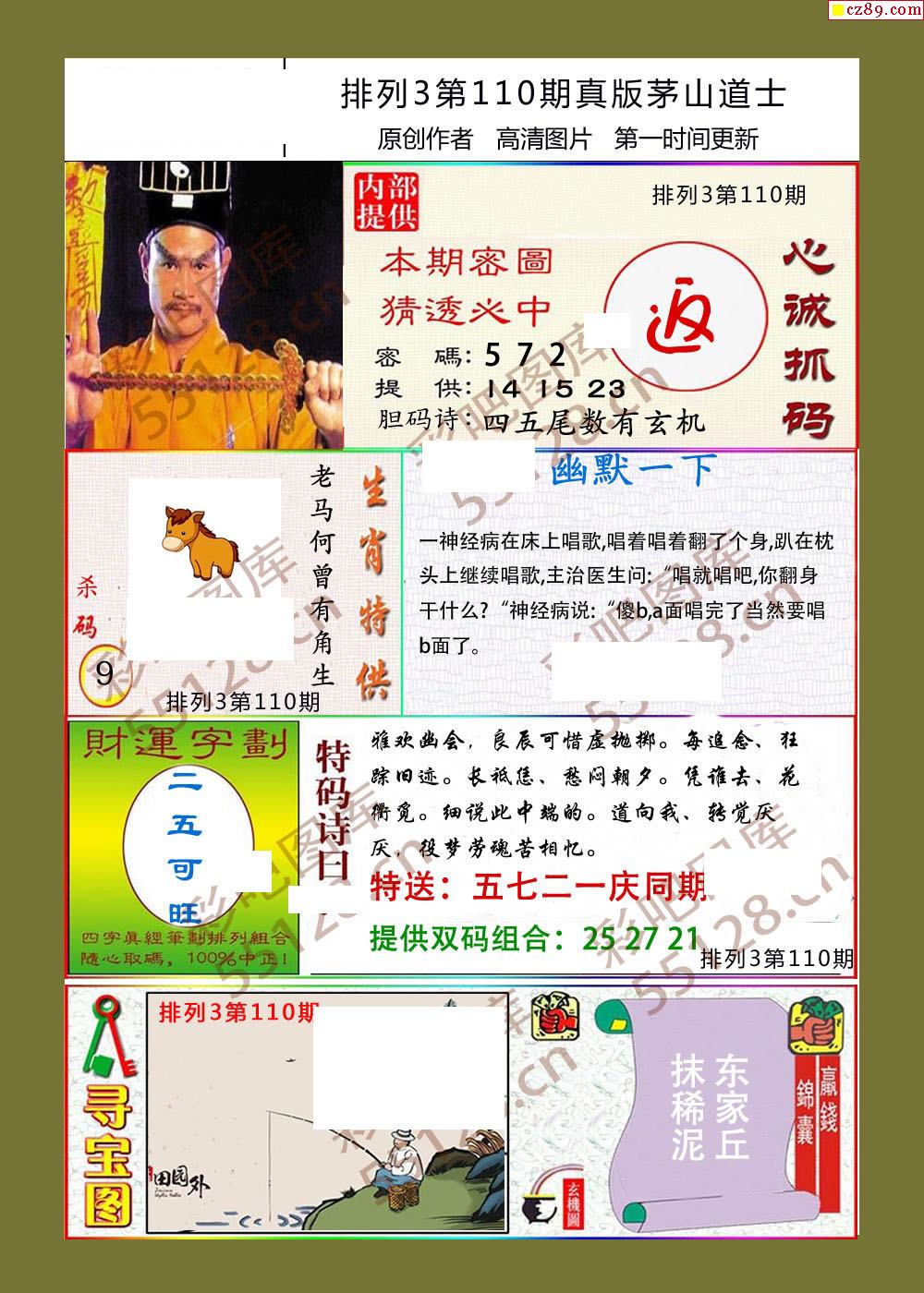 体彩P326年图迷110期 功夫熊猫内幕中奖图