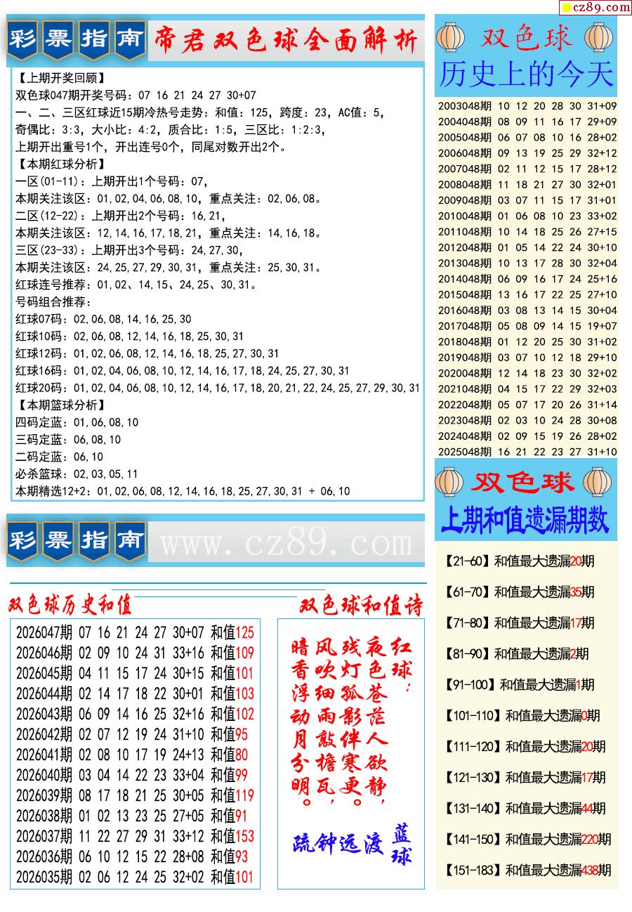 26年048期双色球彩票指南【牛彩版】
