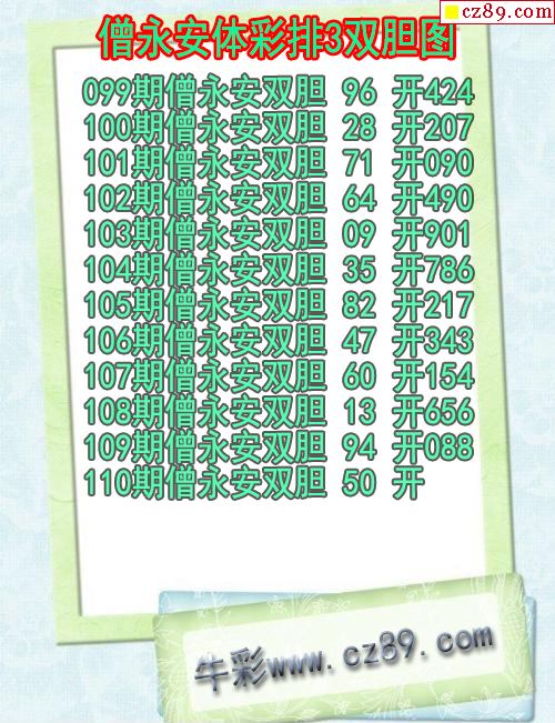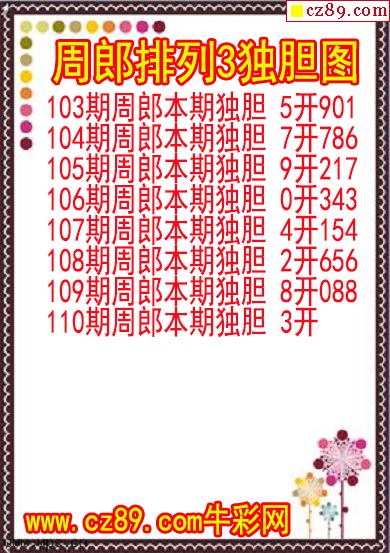2026年110期牛彩网体彩P3画迷图谜汇总分享