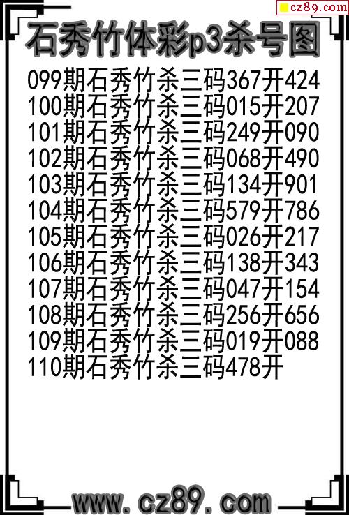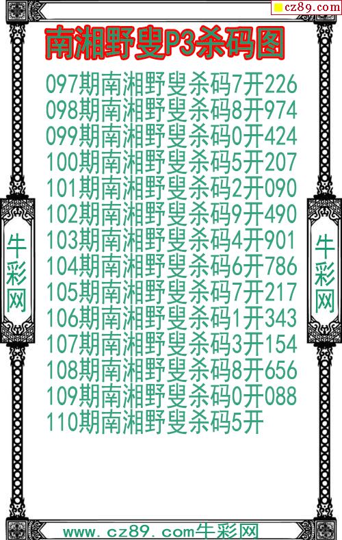 26年110期公孙梦体育彩票P3杀码图