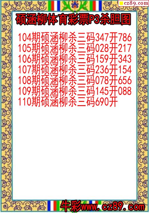 26年110期刘绍棠体彩排三杀码图