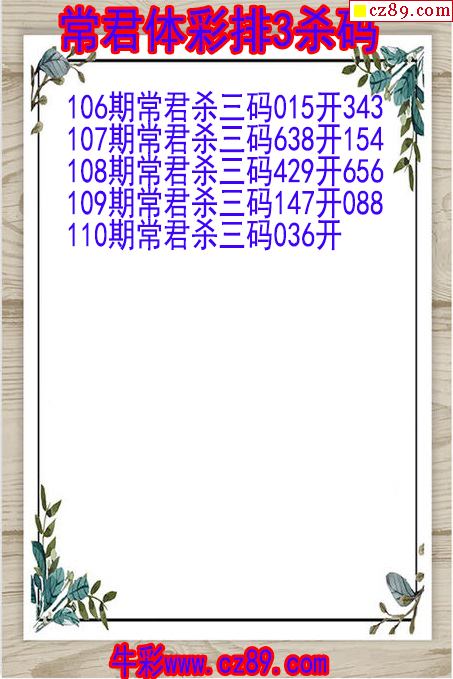 26年110期常君体彩排3杀码图