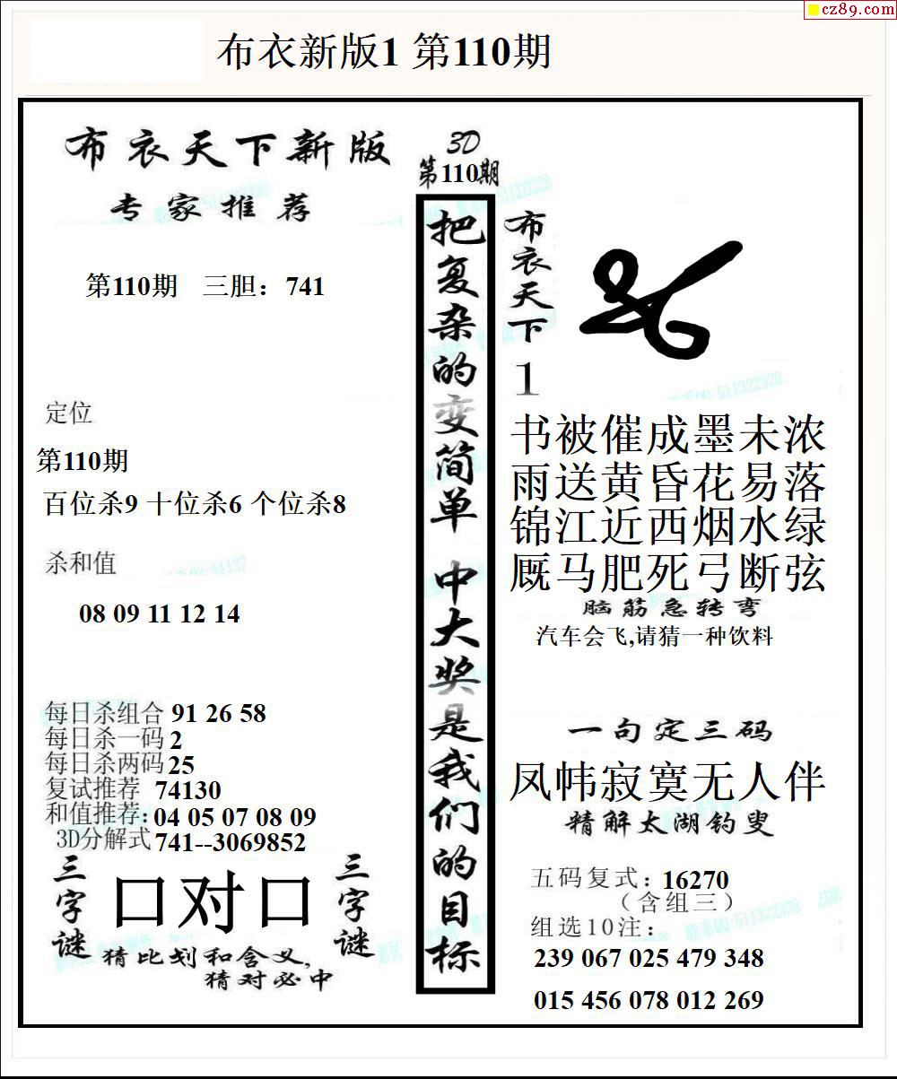 布衣天下新版2026110期3d图谜