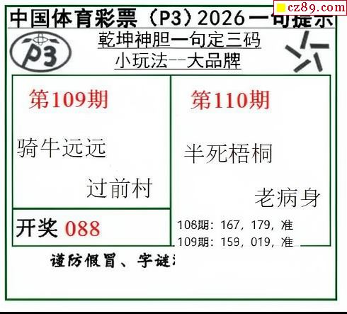 2026年110期牛彩网体彩P3画迷图谜汇总分享