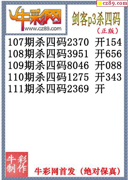 剑客杀码111期体彩P3图谜(原创)