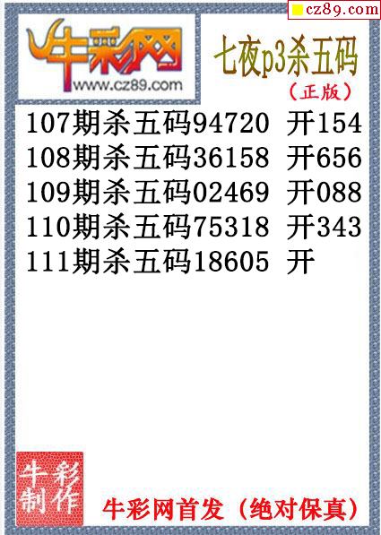 七夜杀码111期体彩P3图谜(原创)