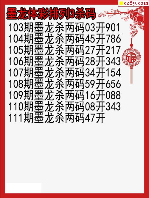26年111期墨龙体彩排列3杀码图