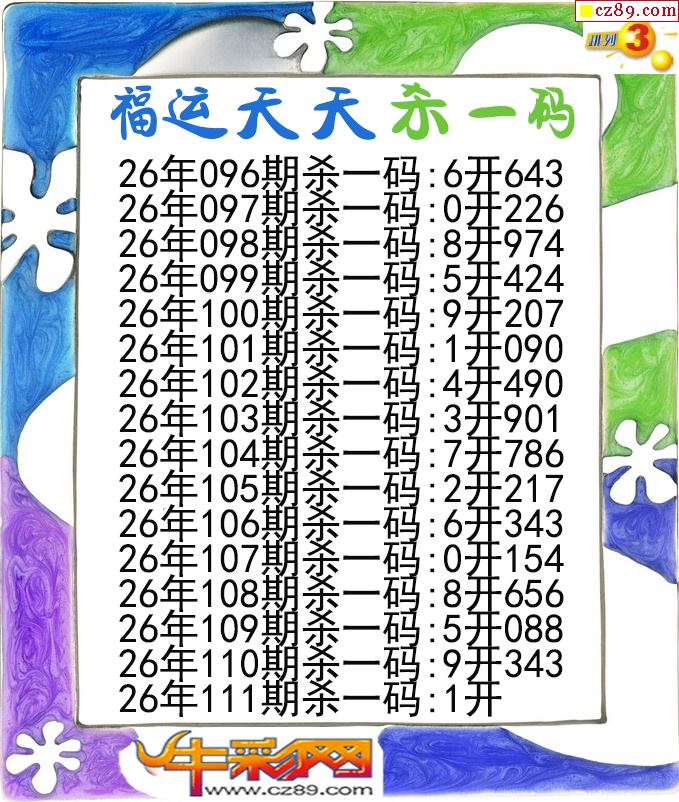 福运天天杀一码111期体彩P3图谜