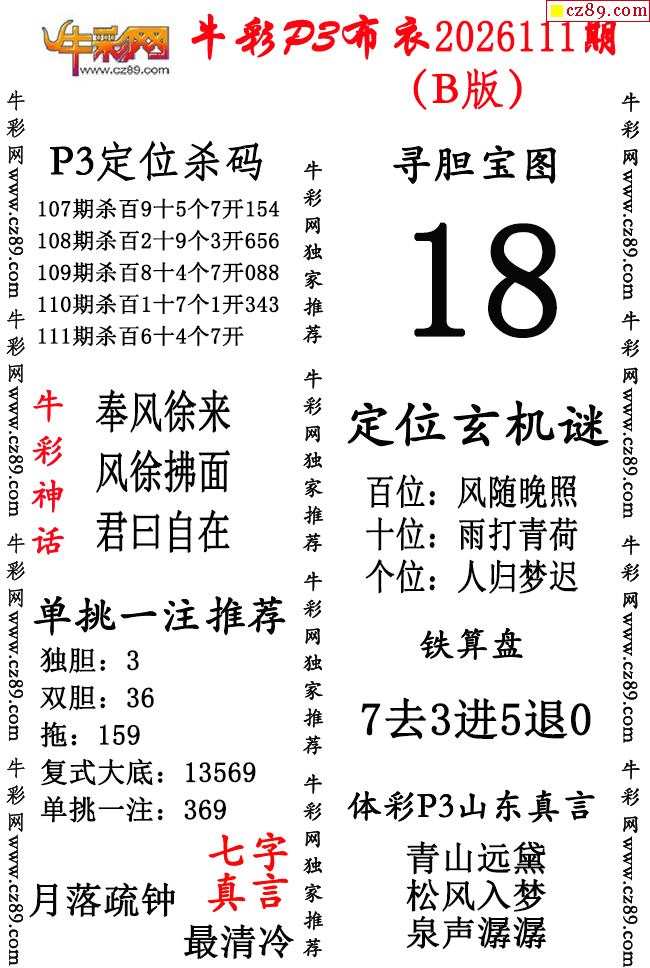 牛彩P3布衣26年111期AB版图谜(精华版)