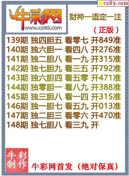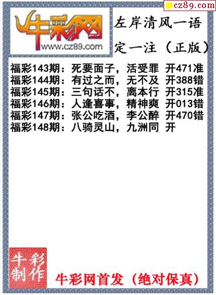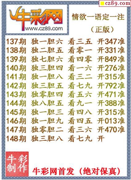 牛彩版3D字谜彩报图25年340期打印版