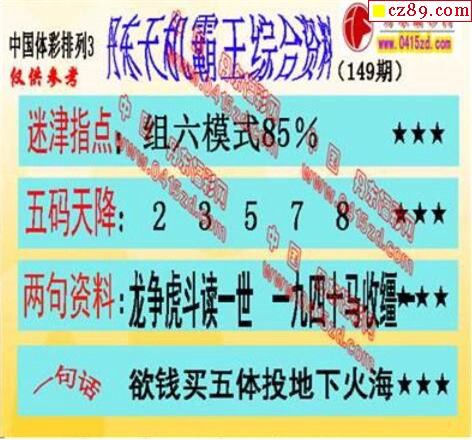 2019149期牛彩网体彩P3画迷图谜汇总分享